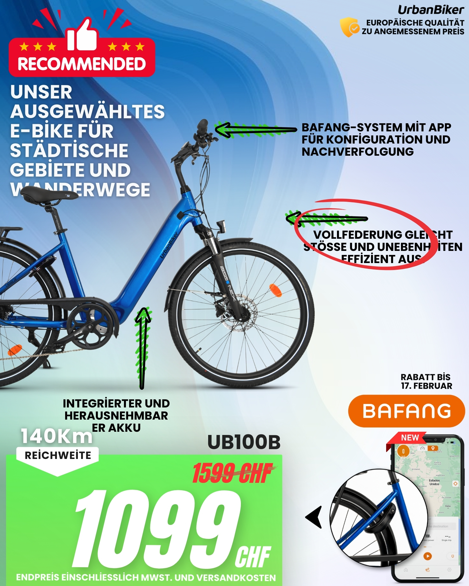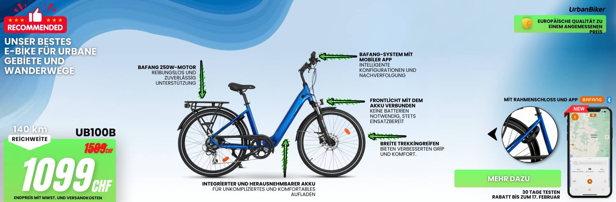 UrbanBiker UB100B | City E-Bike | Bis zu 140 km Reichweite